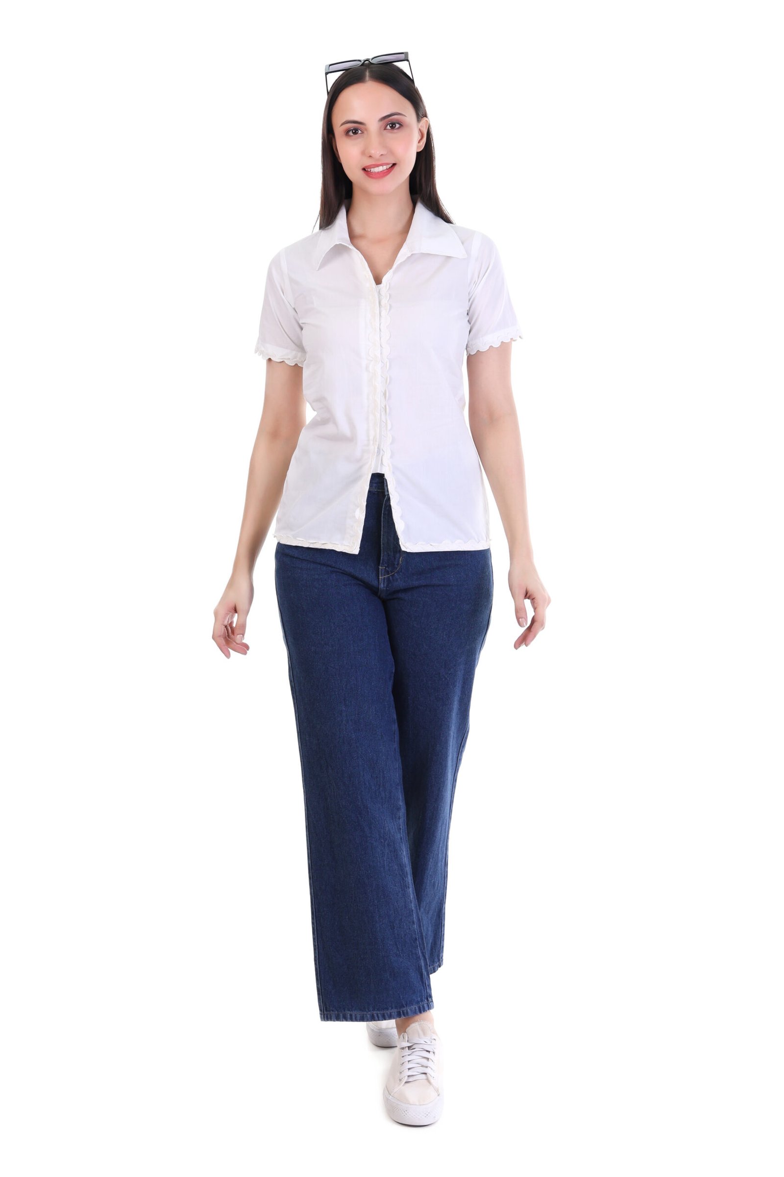 YesTen Women’s White Cotton Lace Top – Non-Stretch Regular Fit, Half Sleeve Shirt Neck Design