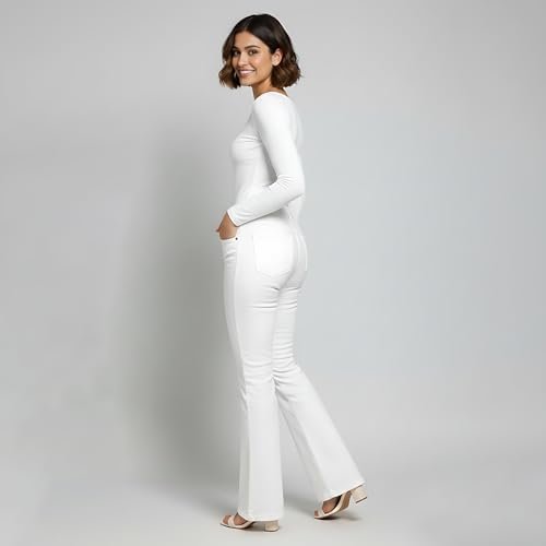 YesTen Women’s White Lycra Denim Bell Bottom Jeans – Stretchable Bootcut Fit, Stylish Casual Wear